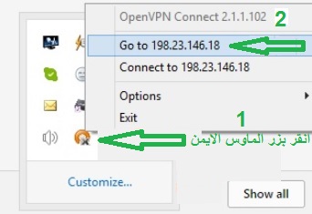 كما تلاحظ تغيير لون الايقونة بشريط المهام وكذلك تغيير رقم ال ip الخاص بك ايضآ.
