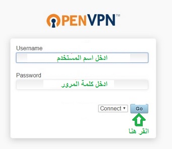 سوف تشاهد شاشة تطالبك بإدخال اسم المستخدم وكلمة المرور التي حصلت عليها عند الاشتراك في الخدمة. كما هو موضوح بالصورة ثم انقر على Go .
