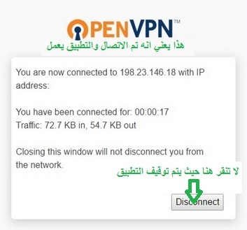 تخرج لك شاشة توضح نجاح عملية الدخول وعمل التطبيق عندها سوف تكتشف فتح المواقع التي كانت محضورة عليك . انت الان تتصفح الانترنت بكل ارياحية وبدون اي حجب للمواقع .