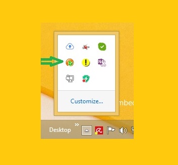 عند تثبيت التطبيق على جهاز الكمبيوتر سوف تلاحظ خروج ايقونة التطبيق بشريط المهام وذلك اسفل الشاشة كما هو موضح بالصورة والمشار اليه برقم 1 وانقر على Go To -رقم 2. .